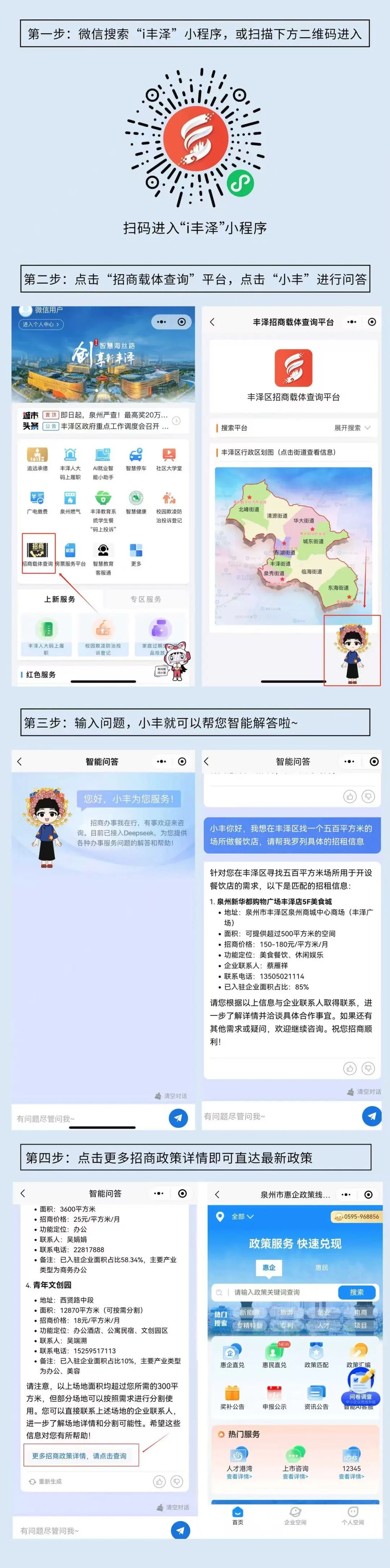 针对招商政策征询、财产搀扶申报等高频场景,依托深度求索(DeepSeek)大模子手艺,“小丰”帮手已配套对接惠企政策平台,